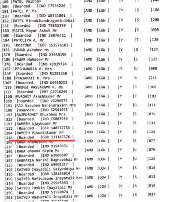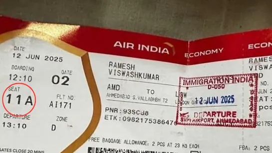বিশ্বাস কুমার রমেশ সেদিন বিমানেই ছিলেন। তাঁর বোর্ডিং পাসের ছবি দুর্ঘটনার পরই সামনে এসেছে, যেখানে নাম এবং সিট নম্বর স্পষ্ট -AI 171, Seat 11A।