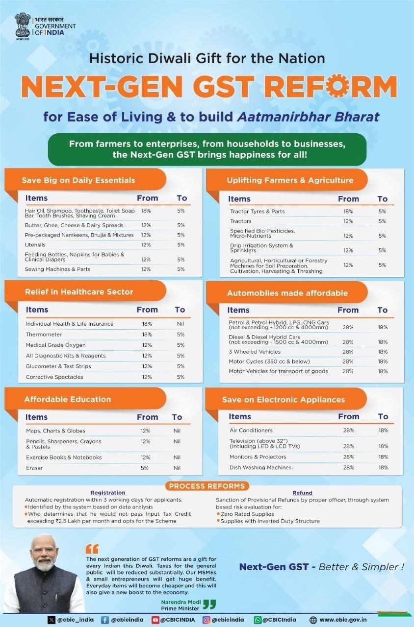 স্বাধীনতা দিবসের দিন লালকেল্লা থেকে প্রধানমন্ত্রী নরেন্দ্র মোদী (Narendra Modi) ঘোষণা করেছিলেন যে জিএসটি হারে বড় পরিবর্তন আসতে চলেছে। দীপাবলির আগেই দেশবাসী বড় উপহার পাবেন বলেও জানিয়েছিলেন তিনি।