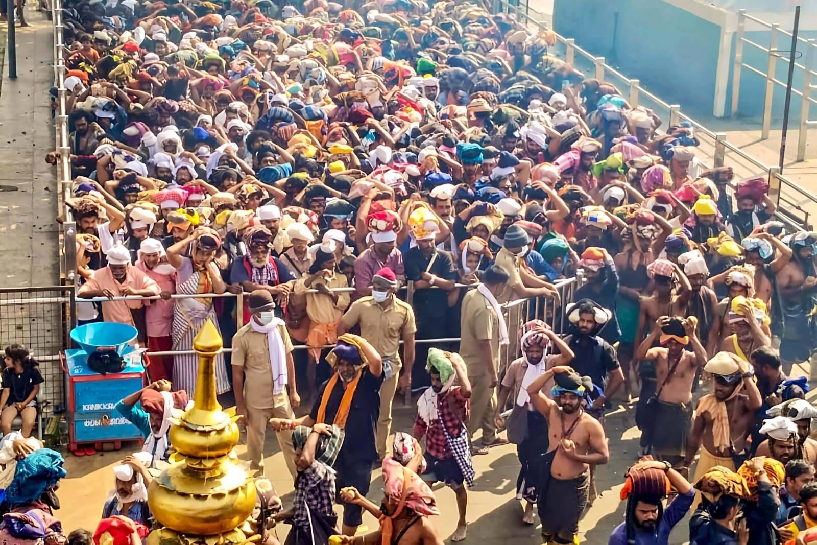 মন্দির চত্বরে ১৮ পবিত্র সিঁড়ির উপর ও পাম্বা–সন্নিধানম পথে এমন ভিড় যে স্বয়ং টিডিবি-প্রেসিডেন্ট নিজেই বলেছেন, এত ‘ম্যাসিভ অ্যান্ড ডেঞ্জারাস ক্রাউড’ তিনি আগে দেখেননি। কোথাও কোথাও নাকি লাইনে ঢুকে পড়ার লড়াই, ধাক্কাধাক্কি। তাই নীলাক্কলে আগে থেকেই ভিড় আটকে দিয়ে ধাপে ধাপে পাম্বা ও সন্নিধানমে তোলা হচ্ছে মানুষকে।