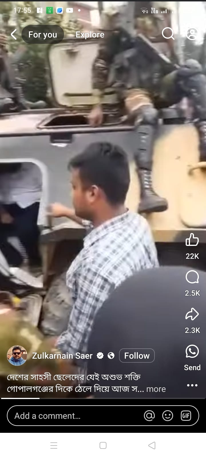 গোপালগঞ্জে গরম গরম ভাষণের পর সেনা কামানের ভিতর লুকিয়ে এলাকা ছাড়েন এই এনসিপি নেতারা
