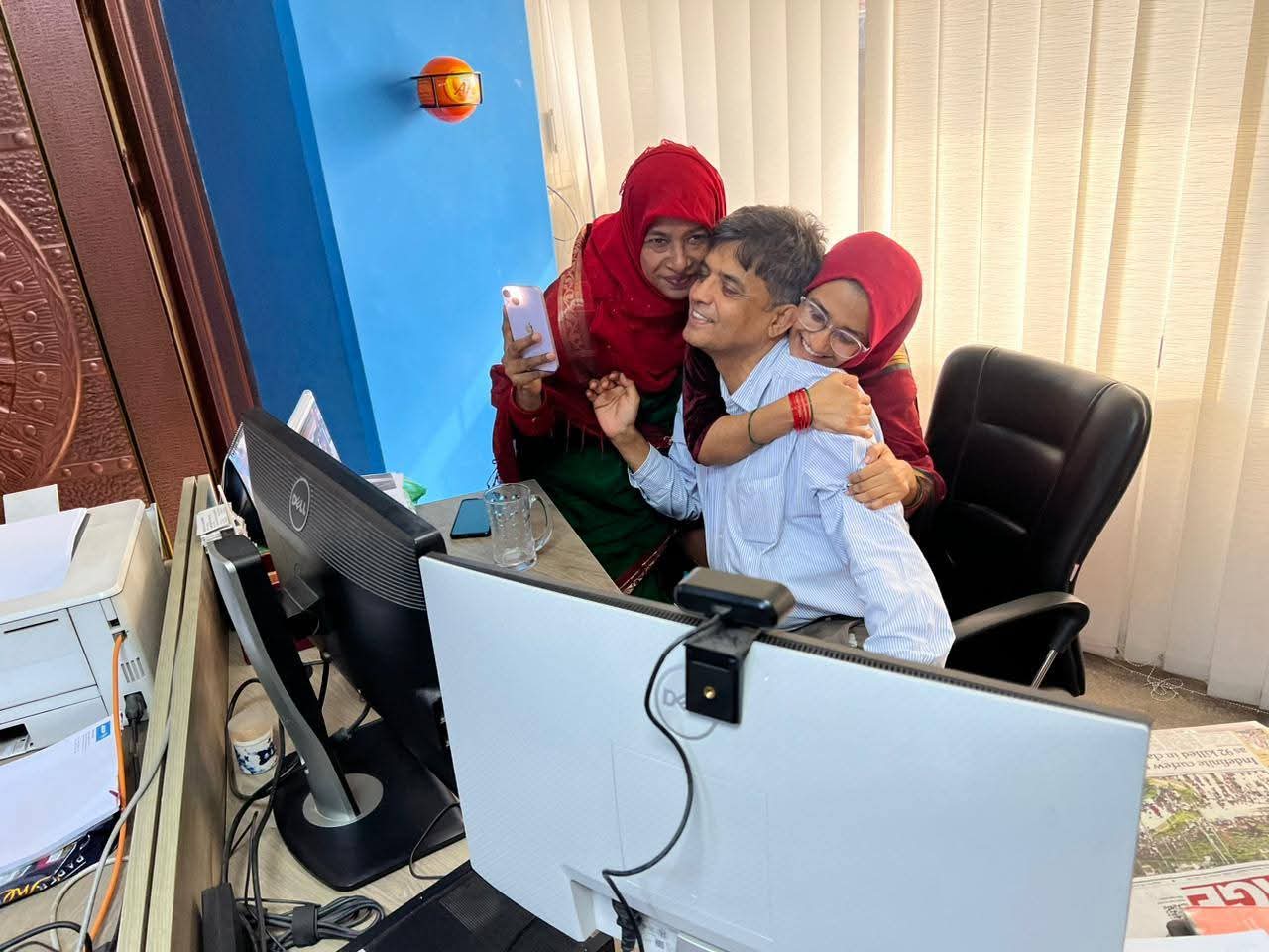 ফেসবুকে তিনি লিখেছেন, 'জয়ের মুহূর্ত। আমার পরিবার এএফপি ঢাকা ব্যুরোতে আমার কর্মস্থলে আমাকে অভিনন্দন জানাতে এসেছিল। যেখানে বসে আমি হাসিনার ভারতে পালিয়ে যাওয়ার খবরটি করেছিলাম। আল্লাহ আমাকে সবকিছু দিয়েছেন!! আলহামদুলিল্লাহ!!'
