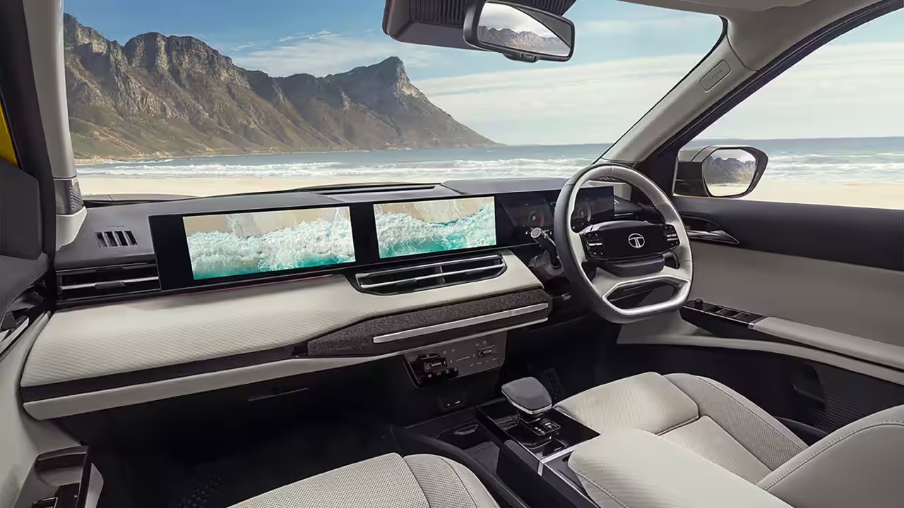 নতুন সিয়েরার (tata sierra 2025) সবচেয়ে বড় প্রযুক্তিগত আকর্ষণ হলো ট্রিপল-স্ক্রিন লেআউট—যা এই প্রথম কোনও টাটা গাড়িতে পাওয়া যাবে। এর মধ্যে রয়েছে—