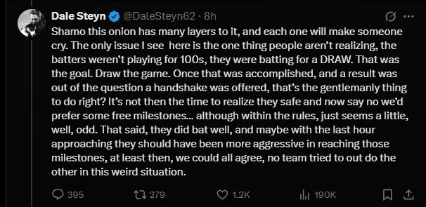 যদিও পোস্টের শেষে ভারতীয় শিবির যেভাবে দৃঢ়তা দেখিয়ে ব্যাট করেছেন, ছিনিয়ে এনেছে ড্র, তার প্রশংসা করেছেন ডেইল স্টেইন।