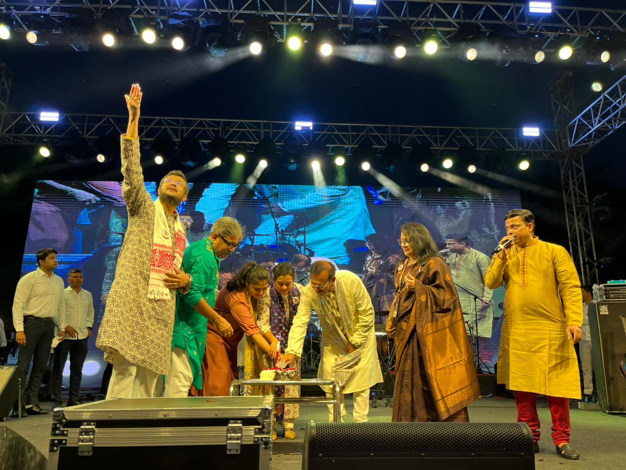 কেক কেটে কলেজের জন্মদিন পালনে মন্ত্রী অরূপ বিশ্বাস, সাংসদ সায়নী ঘোষ, বিধায়ক দেবব্রত মজুমদার, কলেজের পরিচালন সমিতির সভাপতি কউন্সিলর সন্দীপ নন্দী মজুমদার এবং অধ্যক্ষা ড. রাজ্যশ্রী নিয়োগী।
