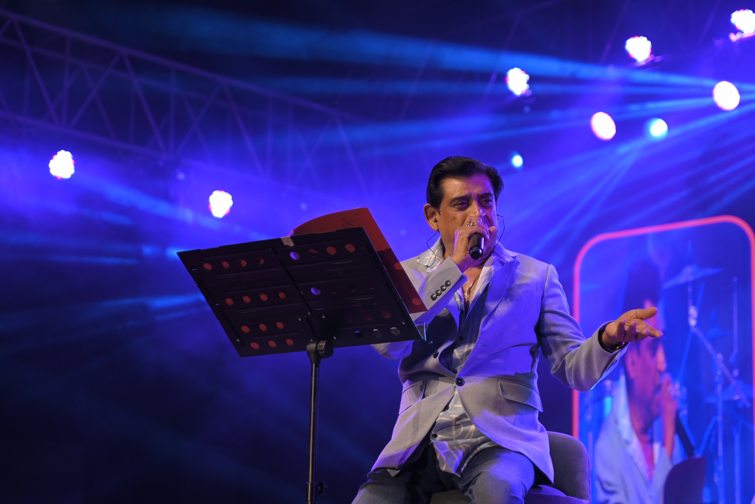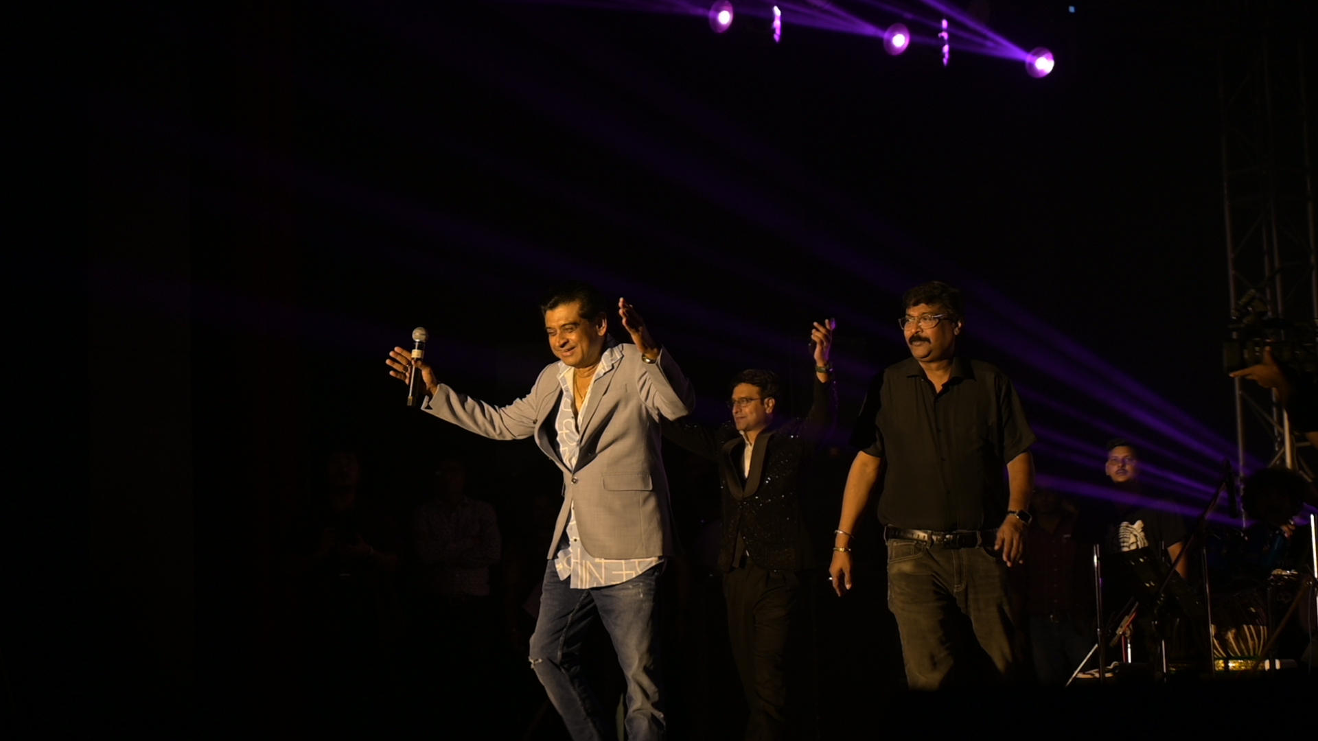 তখন ফাঁকা মঞ্চে দর্শকদের সামাল দিতে থাকেন আরজে অরবিন্দ। কিছুক্ষণ পর আবার মঞ্চে ফিরে আসেন অমিত কুমার। দর্শকরা তখনও হাসতে থাকলে সবাইকে মিষ্টি করে ধমকে দেন তিনি। তারপর আর তাঁকে পায় কে একের পর এক বাবার গানে মাঝেমধ্যে নিজের হিট গানেও মন ভরিয়ে দেন তিনি। 'হাওয়ায় মেঘ সরায়ে' থেকে 'ইয়ে রাতে ইয়ে মৌসম'।