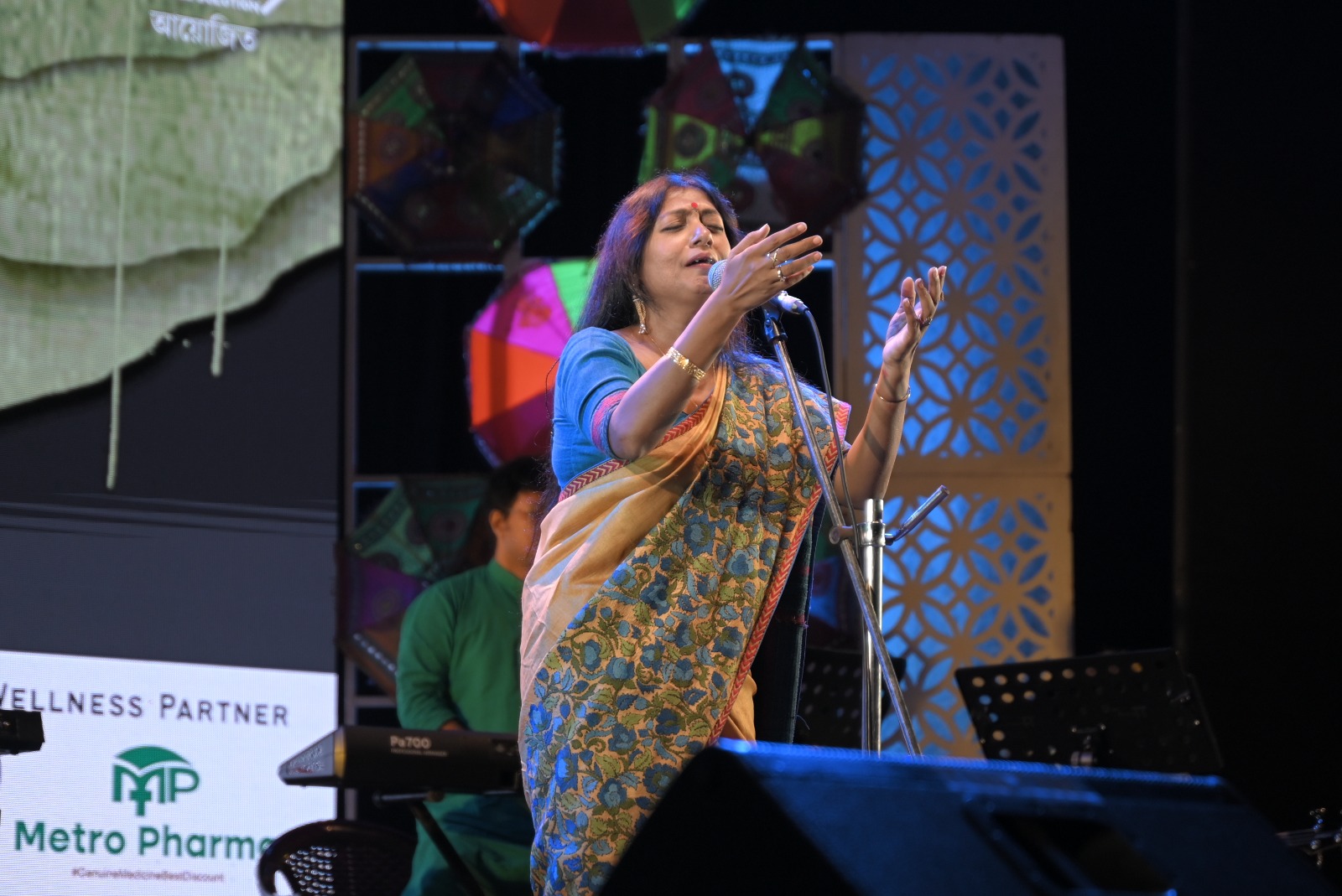 শুরুতেই শুভমিতা মন জয় করে নিলেন তাঁর সাজে। খোলা লম্বা চুলে গায়িকা তো আজকাল চট করে দেখা যায় না। এলো চুলে আর রুচিপূর্ণ শাড়িতে অসাধারণ লাগছিল শুভমিতাকে। প্রথমেই 'নউ তুমি নউ এত চেনা' গান দিয়ে শুরু করলেন। মন জয় করে নিলেন 'চলে যেও না হায়, কেউ থাকে না তো'। ধারালো কণ্ঠে সুরমুর্চ্ছনা ছড়িয়ে পড়ল 'আড়াল ভেঙে দাও, এ আড়াল ভেঙে দাও, কথা দাও যেন হয় কথা দাও' সঞ্চারীতে।