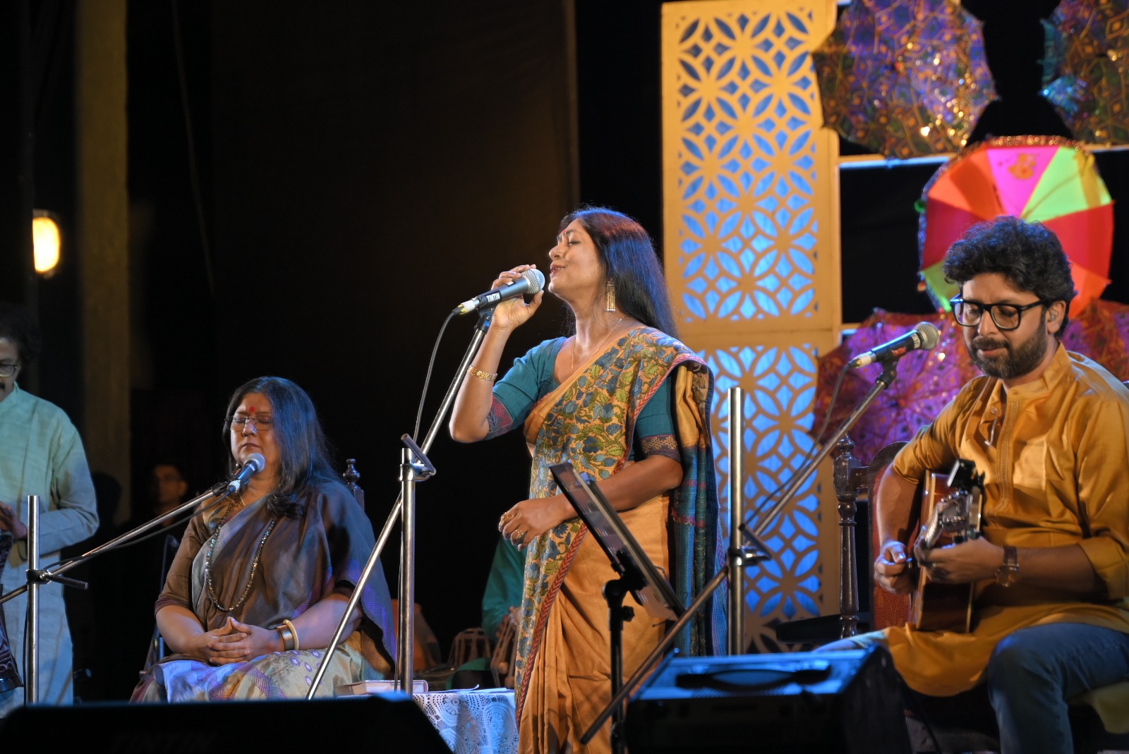 মঞ্চের আলো পড়ন্ত হয়ে এল নচিকেতার কম্পোজিশনে কোকিলকণ্ঠী শুভমিতার 'আমাদের জানলার ফাঁক দিয়ে দেখা যায়, হলুদ টিপের মতো এক ফালি চাঁদ'।