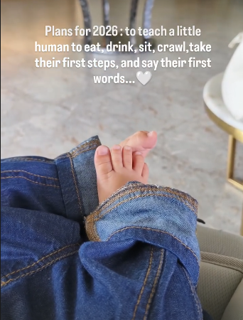 বেশির ভাগ নতুন মায়ের মতোই তাঁর আবেগ, মনোযোগ, ব্যস্ততা সবটাই এখন নিষাদকে ঘিরে আবর্তিত। নতুন বছর শুরু হওয়ার আগেই প্রতিটি ক্ষুদ্র, অথচ গুরুত্বপূর্ণ ধাপের কথা শেয়ার করলেন অনুরাগীদের সঙ্গে। বুধবার নিজের ইনস্টাগ্রাম স্টোরিতে পিয়া একটি ছোট্ট ভিডিও দেন—সেখানে দেখা যায় নিষাদের ফুরফুরে ছোট্ট পা দুটো, নিজের আনন্দে নড়ে উঠছে। আর সেই ভিডিওর ক্যাপশনে তিনি লিখেছেন—“২০২৬-এর জন্য প্ল্যান: একটা ছোট্ট মানুষকে শেখাবো কীভাবে খেতে হয়, বসতে হয়, হামাগুড়ি দিতে হয়, জল খেতে হয়, কীভাবে প্রথম পা ফেলে হাঁটতে হয় আর ওর প্রথম কথা বলা।”