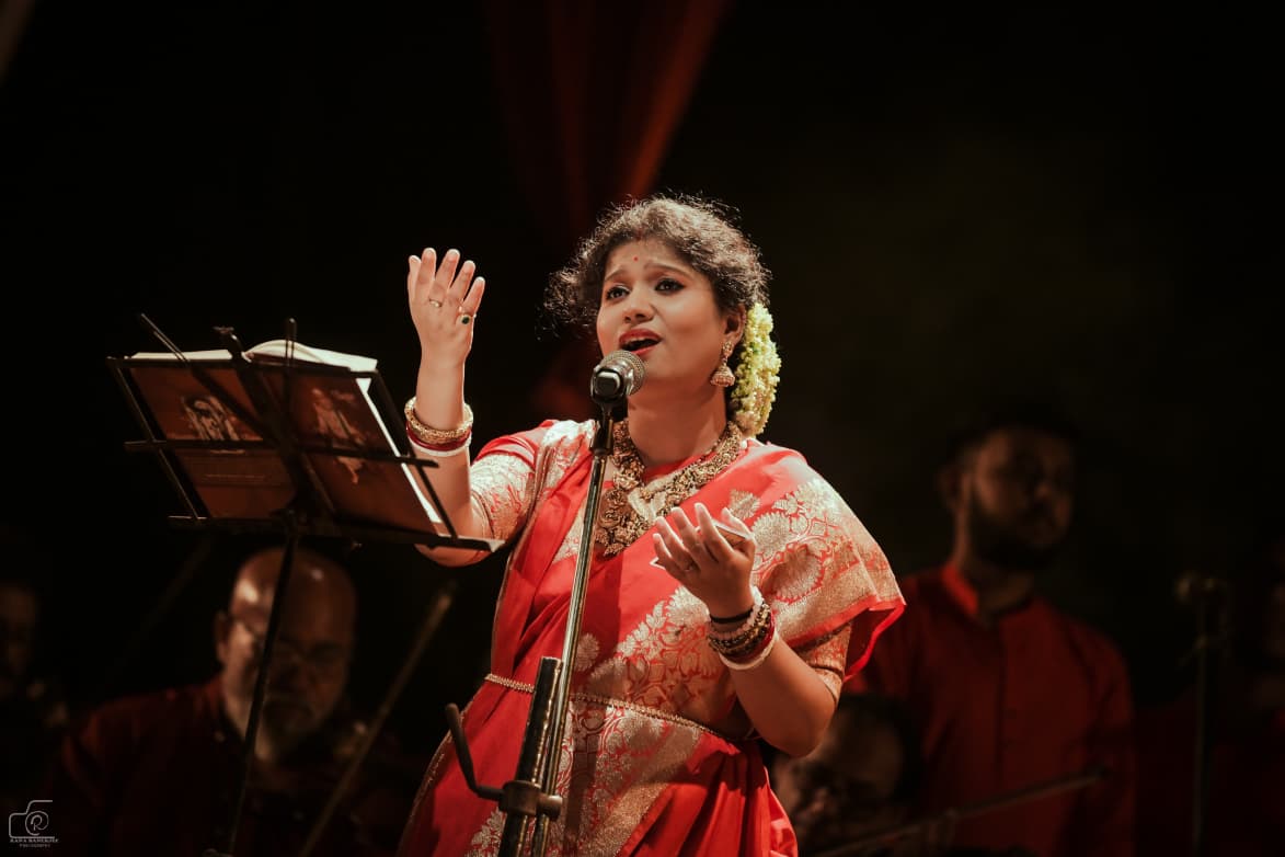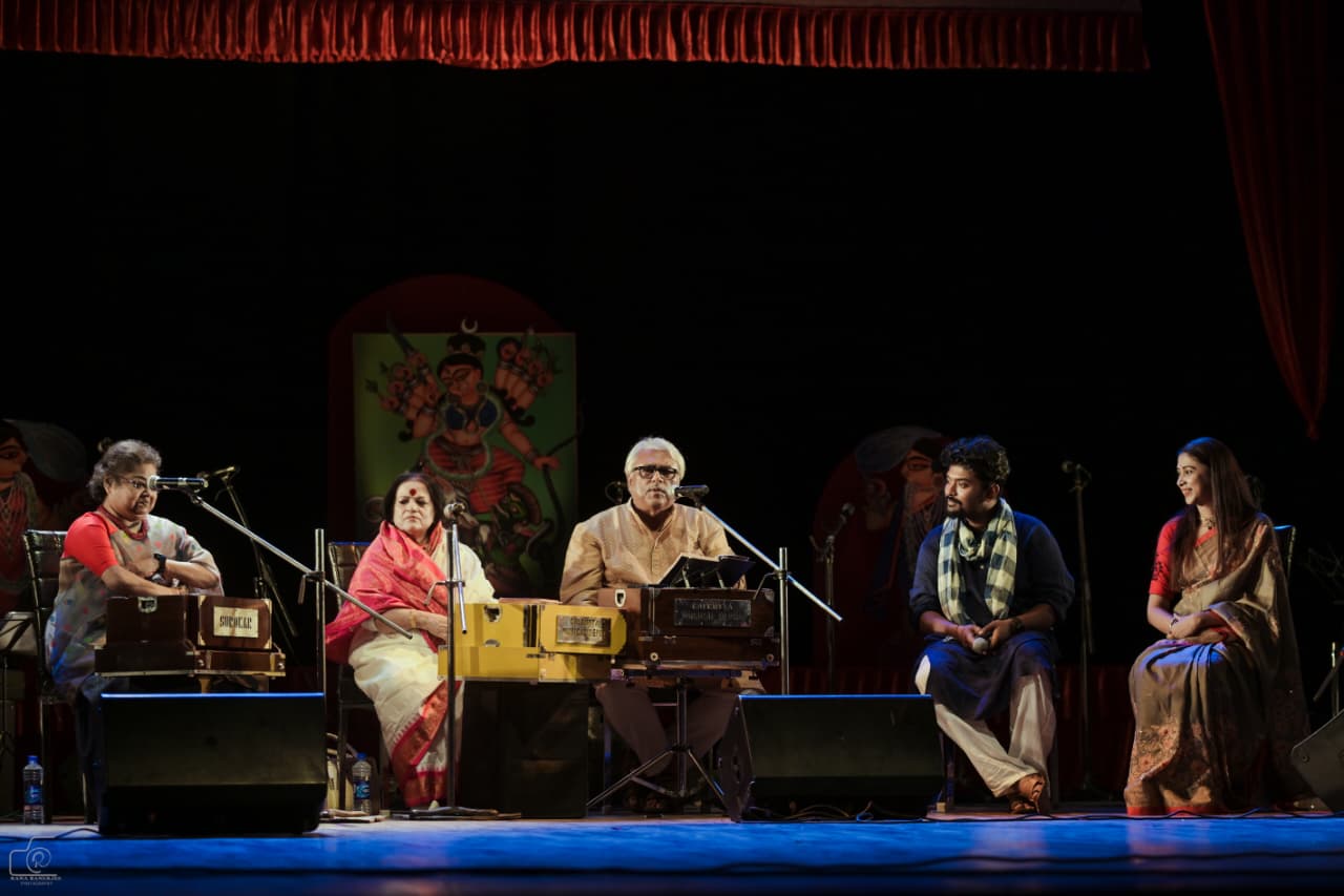 দেবাদৃত চট্টোপাধ্যায়ের কণ্ঠে 'জাগো দুর্গা', তৃষ্ণা পাড়ুই-অরিত্র দাশগুপ্তর 'শুভ্র শঙ্খ রবে', অরিত্রর একক 'তব অচিন্ত্য' মন ছুঁয়ে গেল। 'অখিল বিমানে তব জয় গাঁথা', 'বিমানে বিমানে', 'মাগো তব বিনে সঙ্গীত' গানগুলি শিল্পীদের কণ্ঠে শাস্ত্রীয় রাগের ললিতকলা ছড়িয়ে গেল। নজর কাড়ল দুই যমজ ভাইয়ের সংগীত পরিবেশন। যা বেশ বিরল।