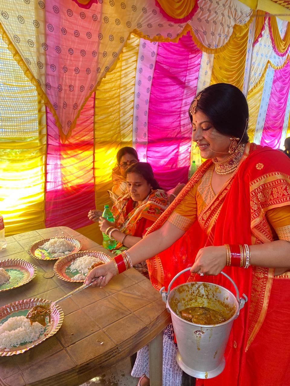 দ্য ওয়ালেই দেবীপক্ষর শুরুতে বুলবুলি জানিয়েছিলেন কী ভাবে নবরাত্রির ব্রত রাখেন প্রতি বছর। আজ নবমীর দিন সেই নবরাত্রির ব্রত সমাপন হল। বুলবুলি বললেন 'এই পুজোতে বলিপ্রথা নেই। তাই মায়ের ভোগ নিরামিষ পদেই হয়। অষ্টমীর দিন সন্ধিপুজো, আরতি হল। নবমীর দিন আমাদের অনেকগুলো বিশেষ কাজ থাকে। বাড়ির প্রায় সকল মহিলারাই নবরাত্রি করেন। আজ নবরাত্রি ভাঙার দিন। মহালয়ার পর থেকে নবরাত্রি পালন করে আজকে প্রথম আমরা মৎস্যমুখ করব। আমাদের গ্রামের পুকুর থেকেই সেই মাছ তোলা হয়।