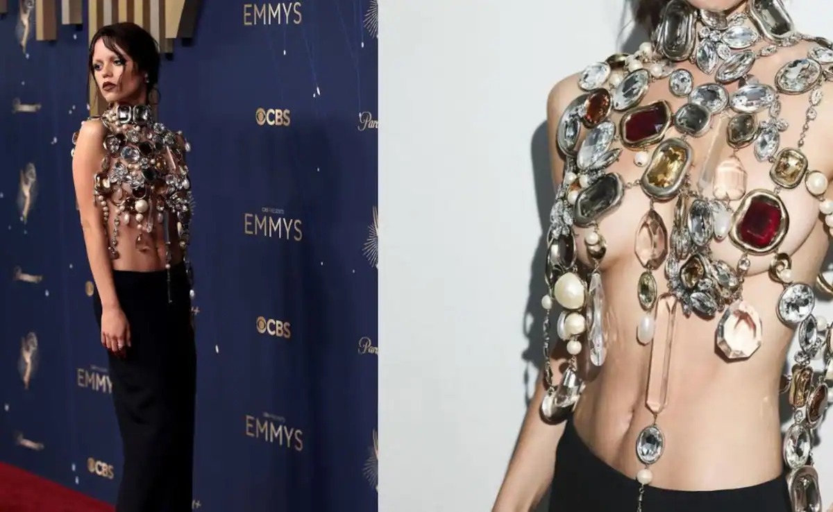 Wednesday-এর অভিনেত্রী জেনার নগ্ন পোশাক বহু ফ্যাশন স্কুলের পাঠ্যে আসতে পারে। তিনি সারা বারটনের প্রথম তৈরি পোশাক পরেছিলেন। বিভিন্ন রঙের ও শেপের ক্রিস্টাল, মুক্তোর চেনের সঙ্গে জড়িয়ে থাকা একটি পোশাক পরেছিলেন। গোটা শরীর জুড়ে যেন ছড়িয়ে ছিটিয়ে ছিল নানান পাথরে গাঁথা মালা। কোমরের অনেক নীচ থেকে পরা ছিল লুবোটিনের একটি ঊরু পর্যন্ত একটি স্লিট স্কার্ট।