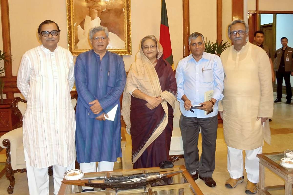 ঢাকায় শেখ হাসিনার সঙ্গে প্রয়াত সিপিএম নেতা সীতারাম ইয়েচুরি ও বাংলাদেশের বাম নেতারা।