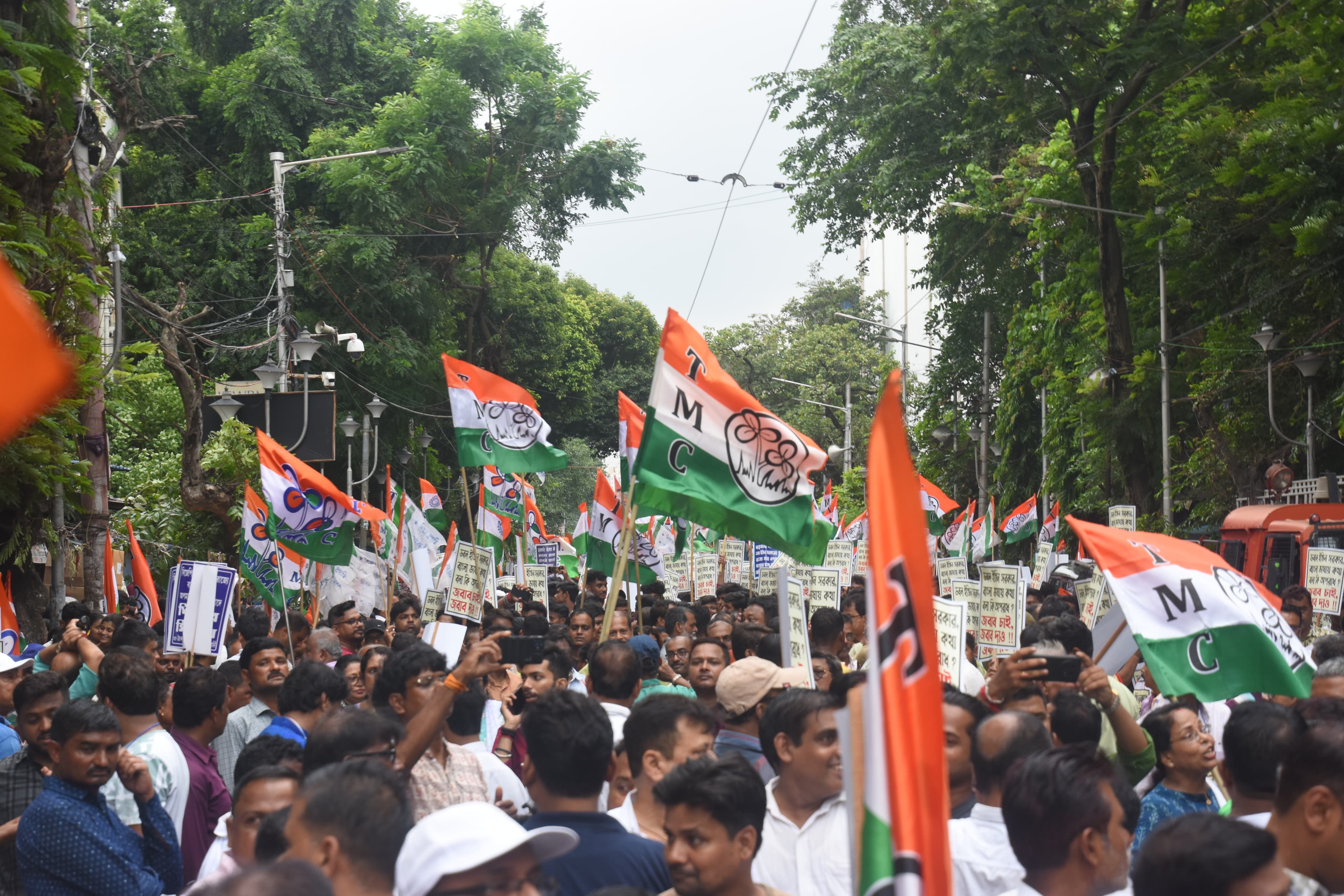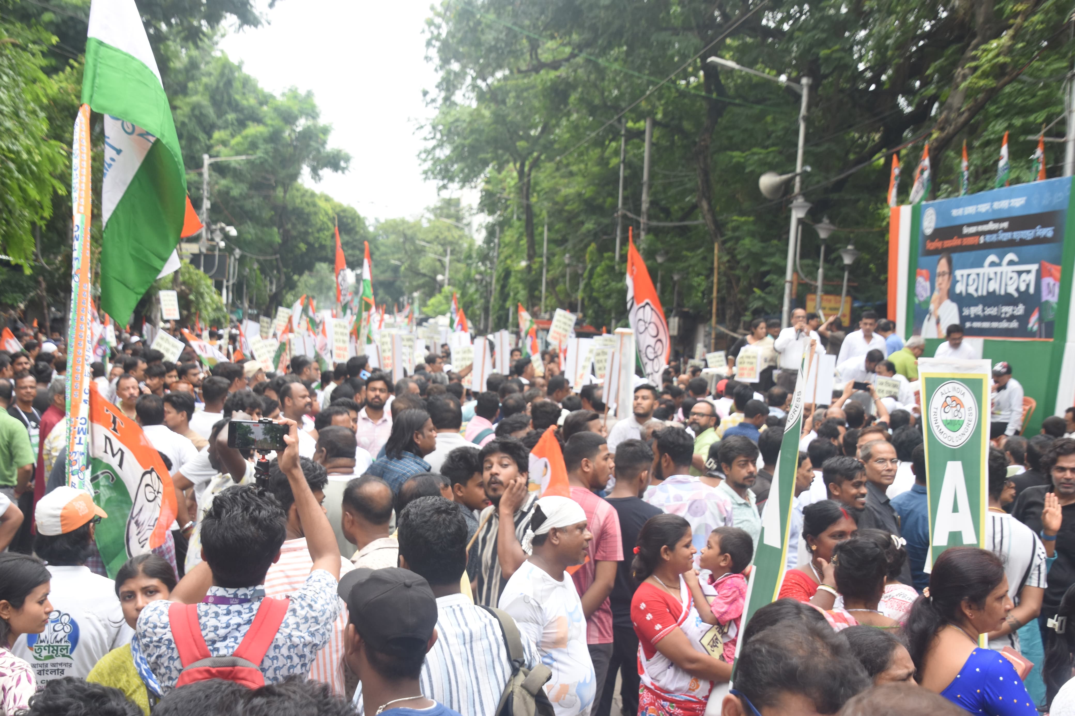 গত কয়েকদিন ধরেই বাংলা জুড়ে ভারী বৃষ্টিপাত চলছে। মঙ্গলবার বিকেল থেকে বৃষ্টির দাপট কিছুটা কমলেও বিক্ষিপ্তভাবে বৃষ্টি হচ্ছে। এদিন মিছিল শুরুর সময়েই ঝমঝমিয়ে বৃষ্টি নামে। তবে এসব পরোয়া না করে এদিনের কর্মসূচিতে যোগ দিতে হাওড়া, দমদম, সল্টলেক ও ভাঙড়-সহ শহরতলির একাধিক এলাকা থেকে দলের নেতা-কর্মীরা অংশ নিয়েছেন। মিছিল শেষ হবে ডোরিনা ক্রসিংয়ে। সেখান থেকে মুখ্যমন্ত্রী এবং অভিষেক কী বার্তা দেন সেদিকে সকলের নজর রয়েছে।