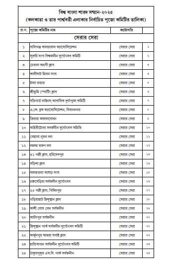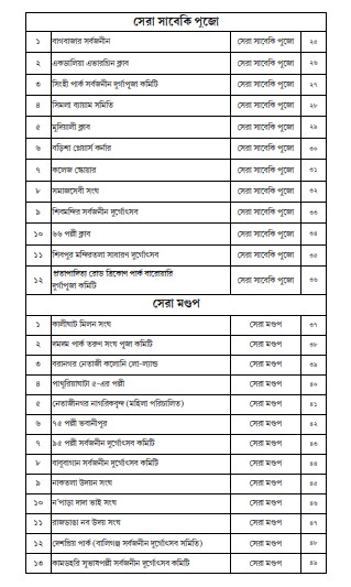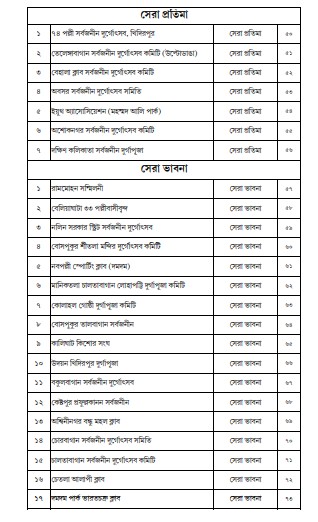 কোন কোন পুজো কমিটি কোন কোন সম্মান পেল তা দেখে নেওয়া যাক -