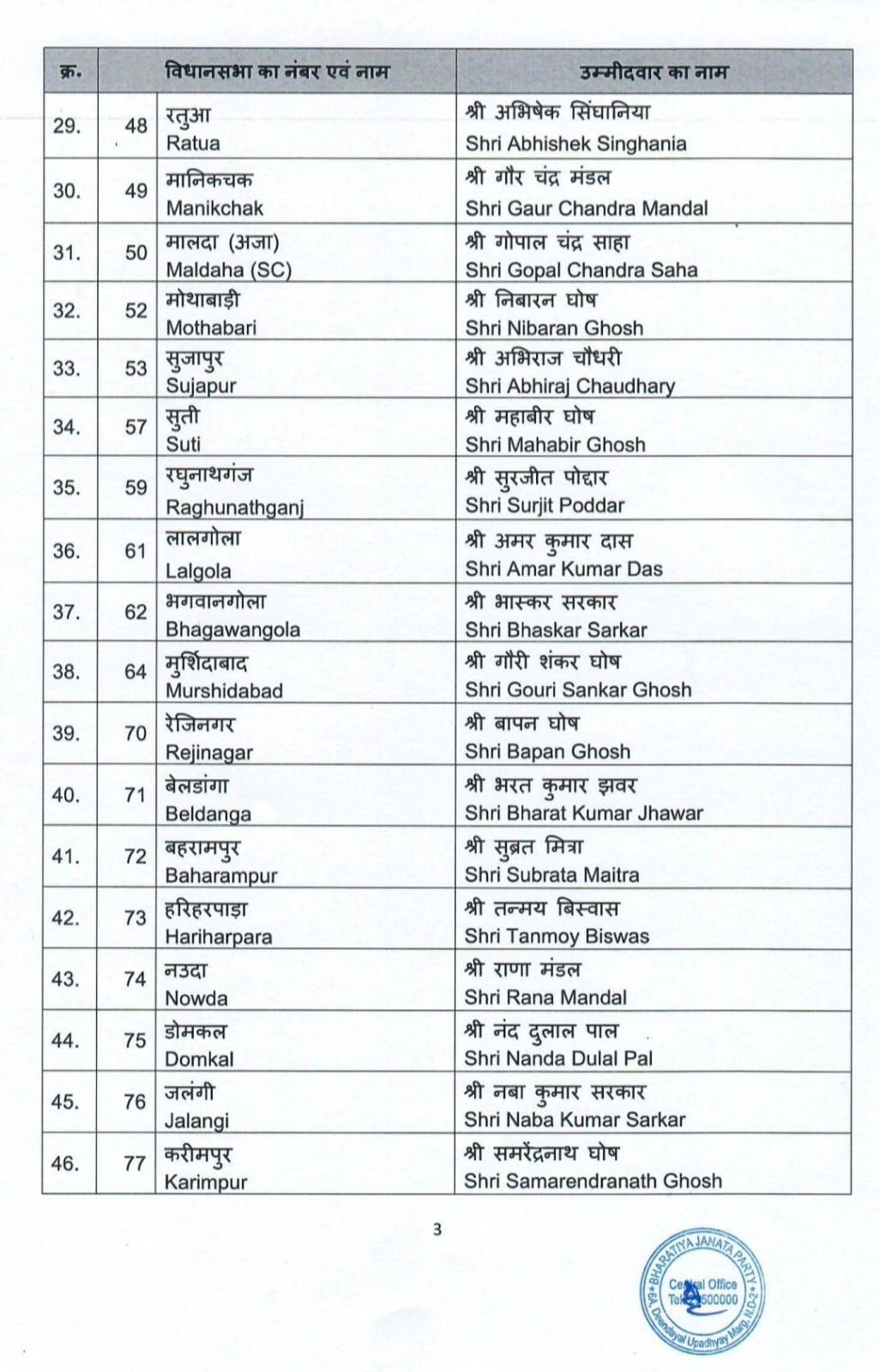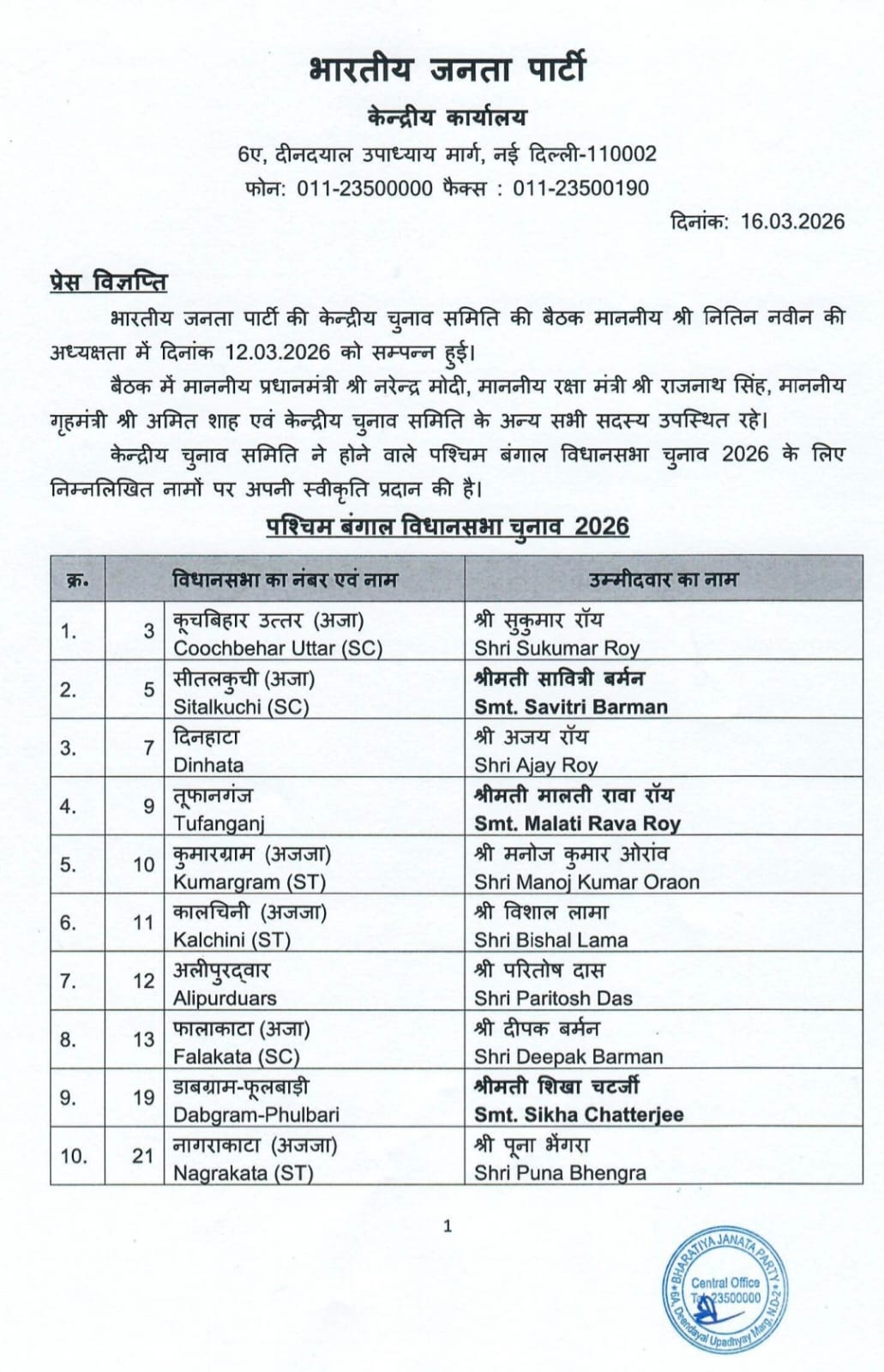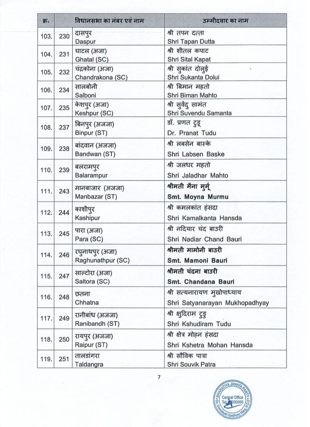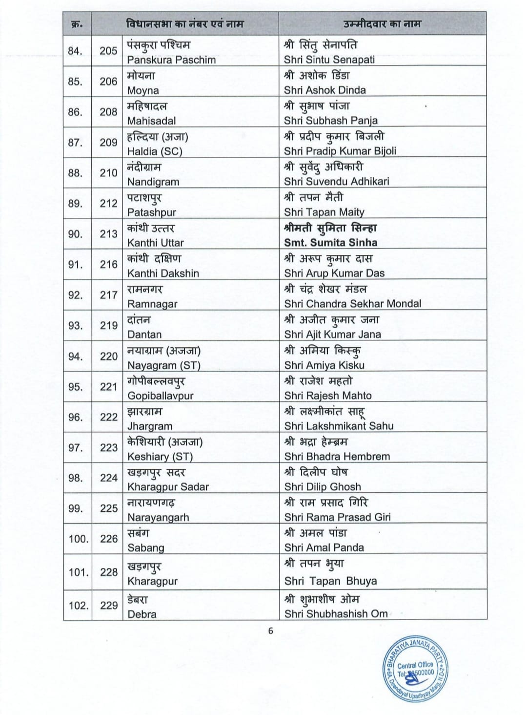 এক নজরে দেখে নিন কাকে কোন বিধানসভা কেন্দ্র থেকে প্রার্থী করা হল