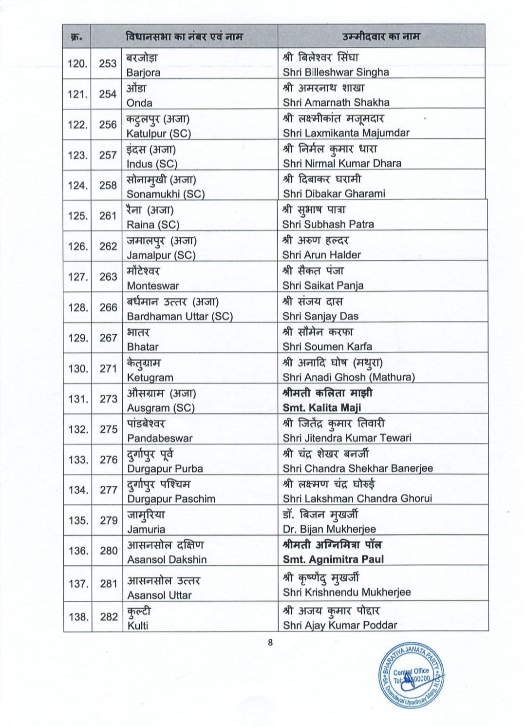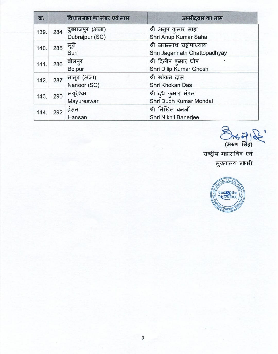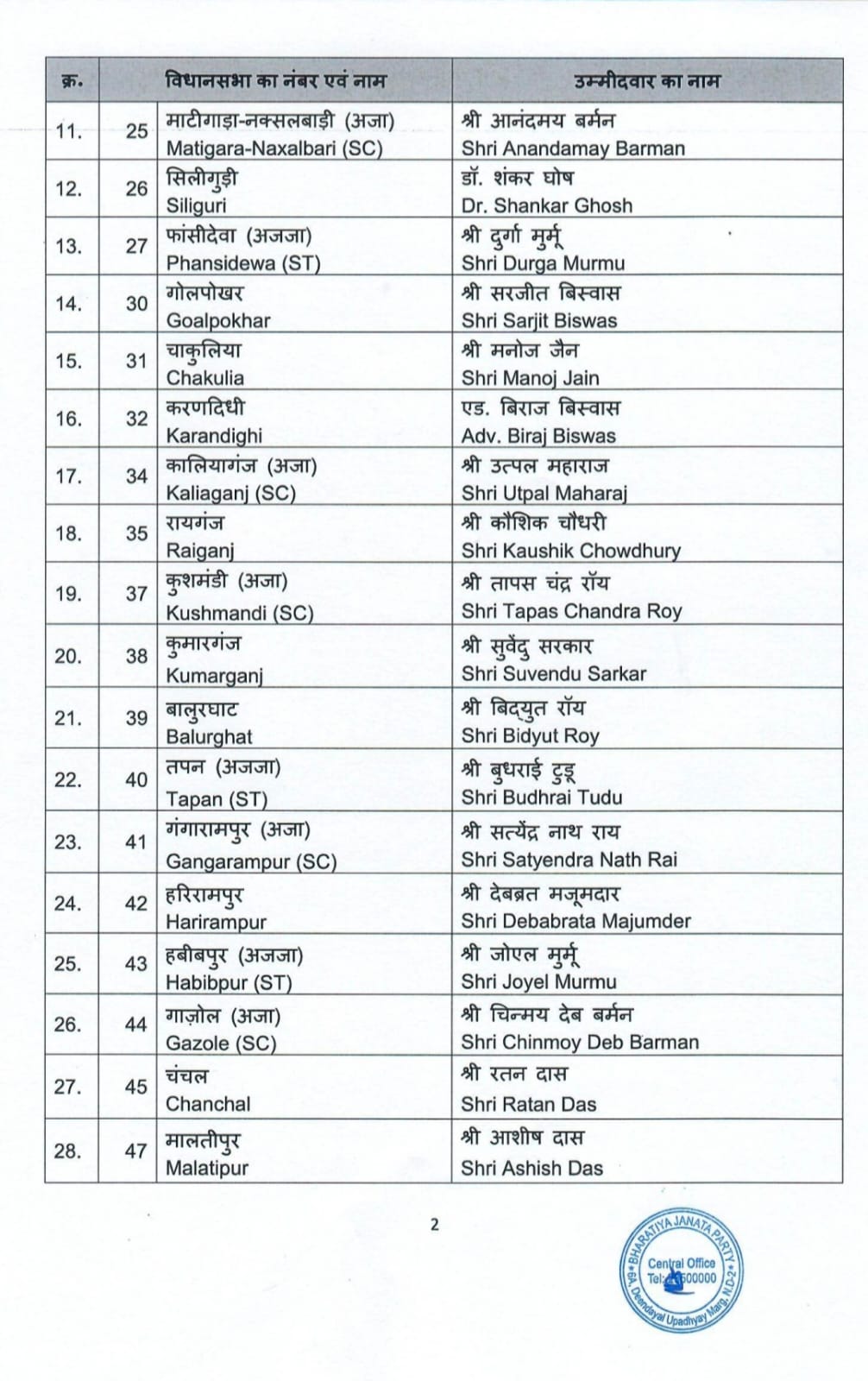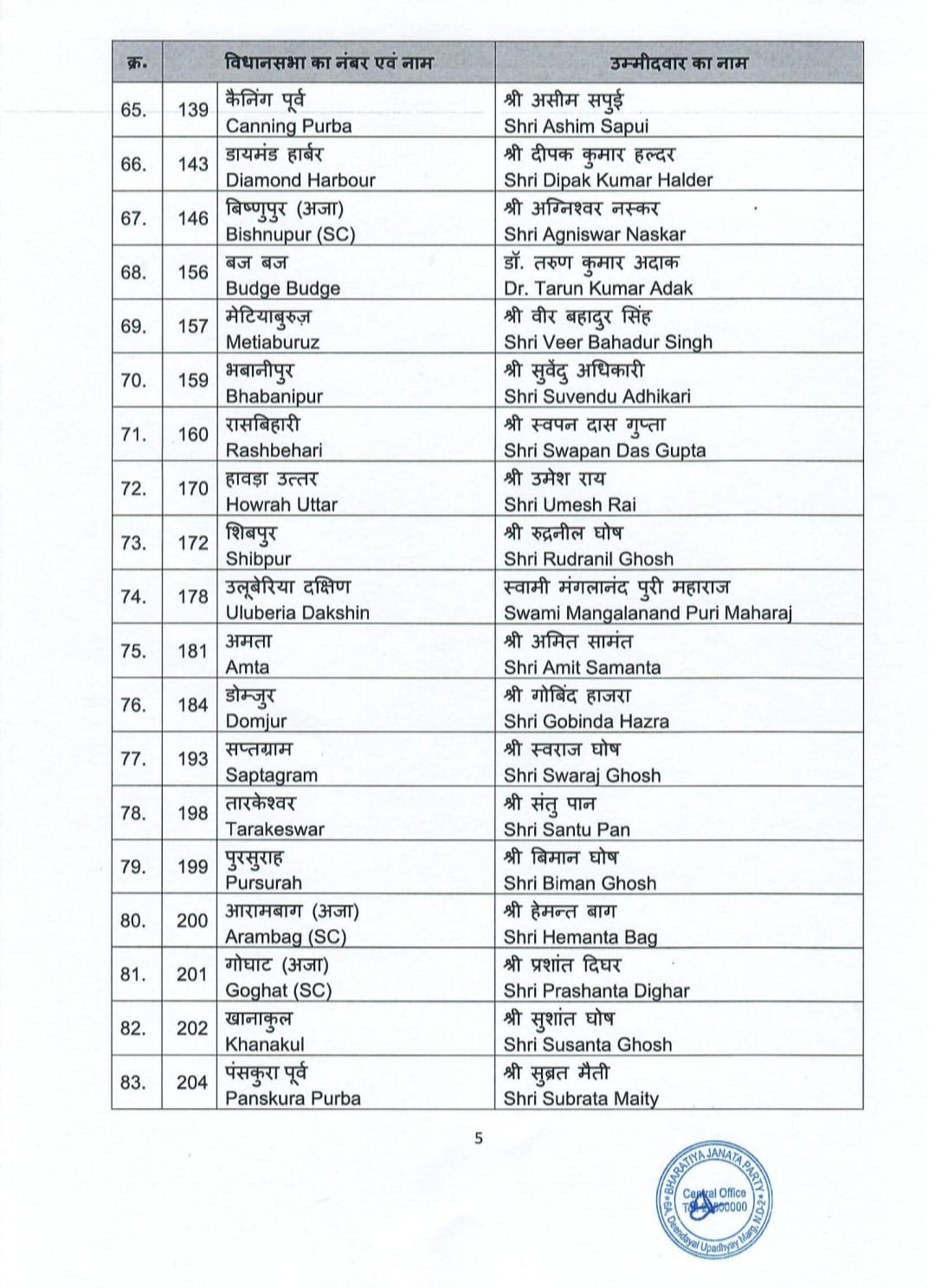 এক নজরে দেখে নিন কাকে কোন বিধানসভা কেন্দ্র থেকে প্রার্থী করা হল