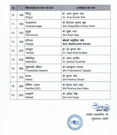 আর যে ১৮ আসনে প্রার্থী দিয়েছে বিজেপি -
