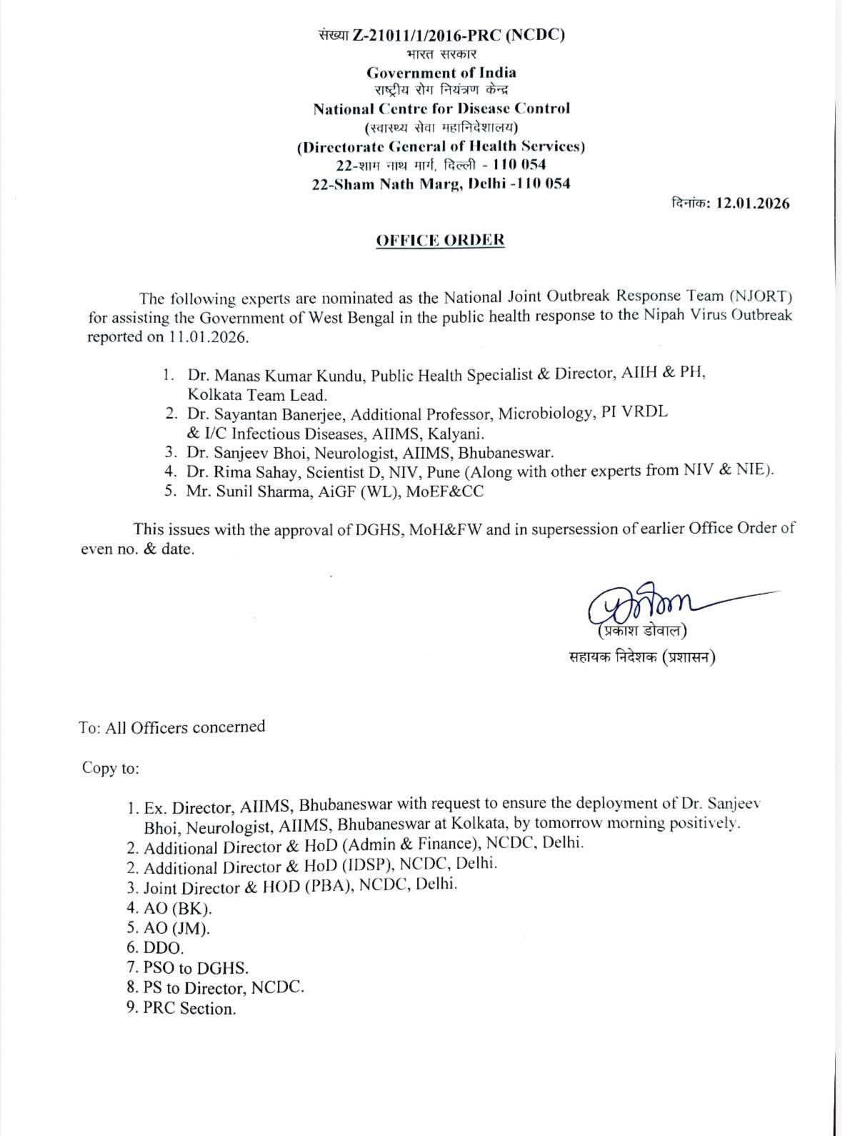 এই তালিকায় রয়েছেন মোট পাঁচ জন বিশেষজ্ঞ চিকিৎসক (Specialist Doctors)। তাঁদের মধ্যে কল্যাণী এইমস (AIIMS Kalyani) এবং ভুবনেশ্বর এইমসের (Bhubaneswar AIIMS) অভিজ্ঞ চিকিৎসকরাও রয়েছেন। নজরদারি বৃদ্ধি, নমুনা সংগ্রহের পদ্ধতি, বেড প্রস্তুতির পরিকল্পনা এবং চিকিৎসা সংক্রান্ত প্রোটোকল তৈরির কাজ ইতিমধ্যেই শুরু করেছে কেন্দ্র। এক কথায়, নিপা পরিস্থিতি মোকাবিলায় কেন্দ্র ও রাজ্যের মধ্যে সমন্বিত পদক্ষেপ কার্যকর করা হয়েছে।