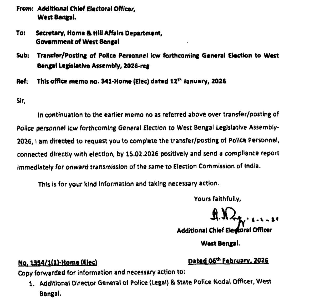 এই মর্মে স্বরাষ্ট্রসচিবকে চিঠি পাঠাল পশ্চিমবঙ্গের অতিরিক্ত মুখ্য নির্বাচনী আধিকারিক।