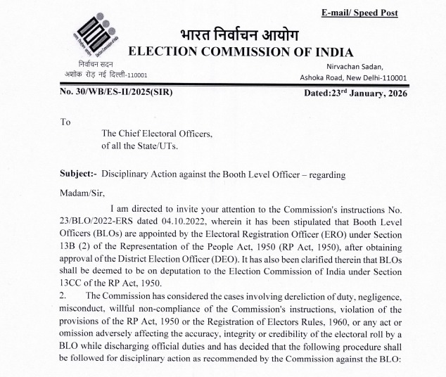 যদি কোনও বিএলও এই ধরনের অনিয়ম বা গাফিলতিতে যুক্ত থাকেন, তাহলে সংশ্লিষ্ট জেলা নির্বাচনী আধিকারিক বা ডিইও (District Election Officer), যিনি পদাধিকার বলে জেলাশাসক (District Magistrate), তাঁর বিরুদ্ধে কঠোর ব্যবস্থা নেওয়া হবে। প্রয়োজন হলে ওই বিএলওর বিরুদ্ধে বিভাগীয় ব্যবস্থা নেওয়ারও নির্দেশ দেওয়া হয়েছে।