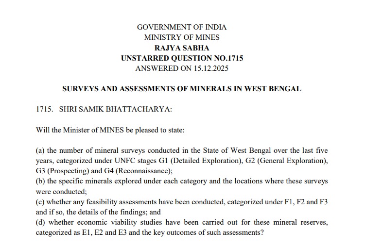 তবে এর মধ্যেও একটি জায়গা বিশেষভাবে নজর কেড়েছে। বাঁকুড়া জেলার হংসাডুগরি (Hansadugri)-র ক্ষেত্রে সম্ভাবনা আরও এক ধাপ এগিয়ে বলে জানিয়েছে কেন্দ্র। ওই এলাকাকে রাখা হয়েছে জি-৩ স্তরে (G-3 Stage)। খনিজ অনুসন্ধানের পরিভাষায় জি-৩ স্তর মানে, প্রাথমিক সমীক্ষার পর সেখানে বিস্তারিত অনুসন্ধান হয়েছে এবং খনিজের উপস্থিতি তুলনামূলকভাবে বেশি বলেই মনে করা হচ্ছে। যদিও এখানেও এখনও খনি খোলার চূড়ান্ত সিদ্ধান্ত হয়নি, তবে সম্ভাবনা যে ‘উজ্জ্বল’, তা স্পষ্ট করে বলা হয়েছে মন্ত্রকের উত্তরে।