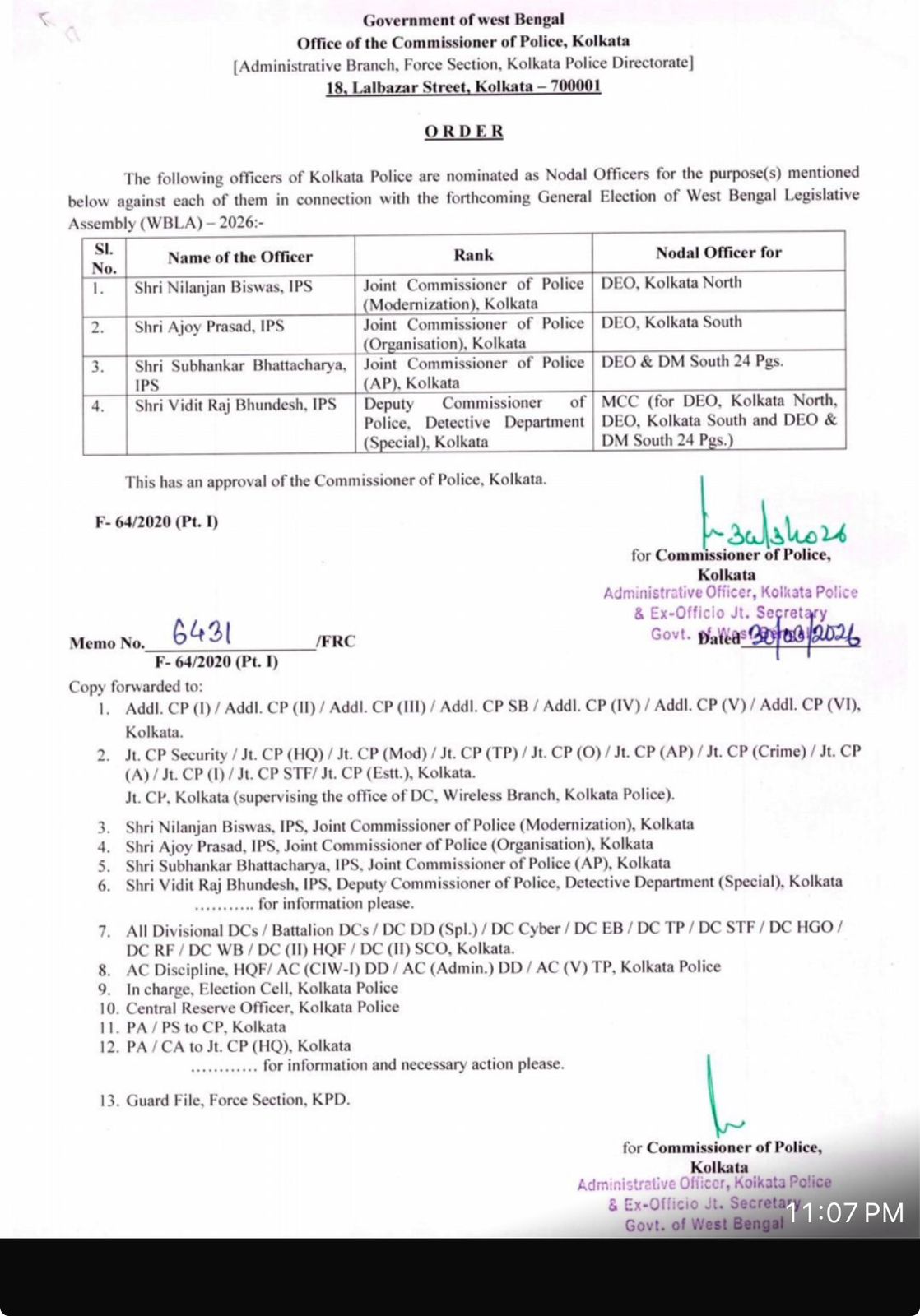 এই নিয়োগে কলকাতা পুলিশ কমিশনারের অনুমোদন রয়েছে বলেও জানানো হয়েছে নির্দেশিকায়।