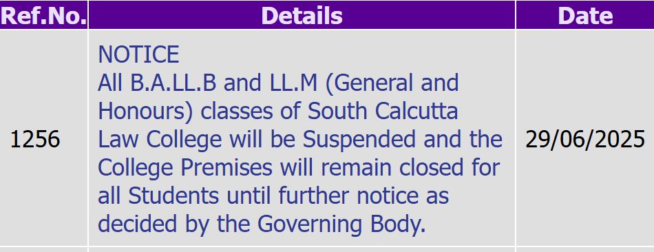 দ্য ওয়াল ব্যুরো: কসবার সাউথ ক্যালকাটা ল কলেজে (South Calcutta Law College) ছাত্রীকে 'গণধর্ষণের' ঘটনার জেরে আপাতত বন্ধ রাখা হচ্ছে কলেজ। ২৯ তারিখ রোববার কলেজের তরফে একটি বিজ্ঞপ্তি জারি করে বলা হয়েছে, "কলেজের সমস্ত বিএএলএলবি এবং এলএলএম (জেনারেল এবং অনার্স) ক্লাস স্থগিত করা হচ্ছে এবং গভর্নিং বডির সিদ্ধান্ত অনুসারে পরবর্তী নির্দেশ না দেওয়া পর্যন্ত কলেজ প্রাঙ্গণ সকল শিক্ষার্থীদের জন্য বন্ধ থাকবে।"