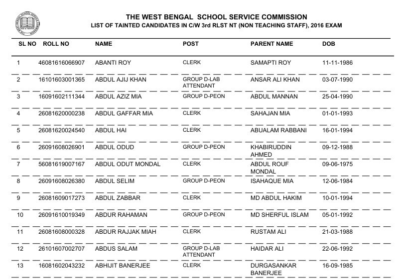 এই দাগিরা এতদিন স্কুলে গ্রুপ সি ও গ্রুপ ডি (Group C & Group D) পদের চাকরি করছিলেন। আদালতের ভাষায়, তাঁরা “বেআইনিভাবে চাকরি প্রাপ্ত” (Illegally Appointed)। আগে আংশিক তালিকা প্রকাশ করা হলেও হাইকোর্টের কঠোর নির্দেশের পরেই বিস্তারিত তালিকা সামনে আনতে বাধ্য হল কমিশন।