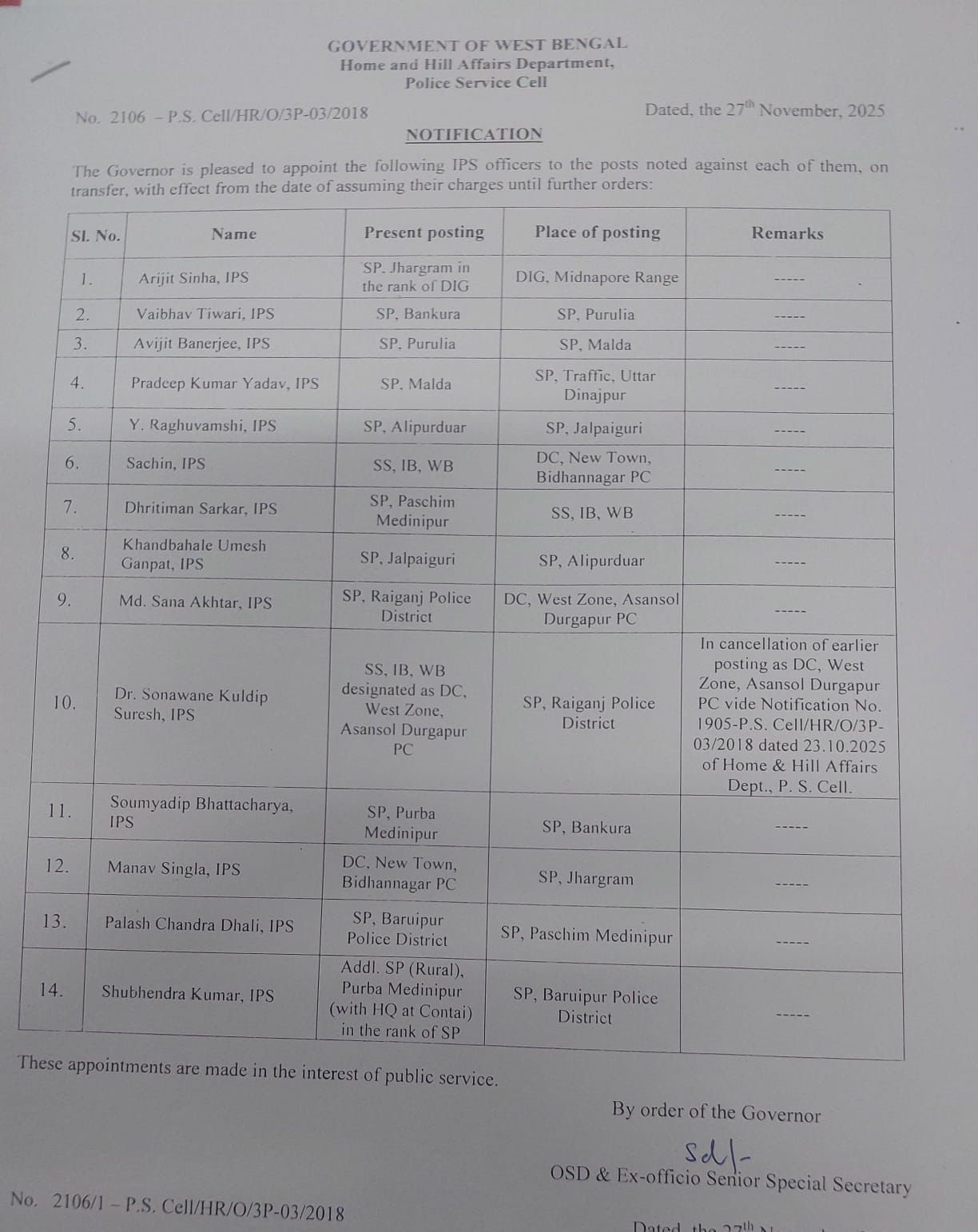 বুধবার সন্ধ্যায় রাজ্য পুলিশের (West Bengal Police) বদলি সংক্রান্ত একটি নির্দেশিকা সামনে এসেছিল যেখানে একযোগে ১৭৫ জন পুলিশ পদাধিকারীকে বদলি করা হয়েছিল। বৃহস্পতিবার ১০ জেলায় বড় বদল করল রাজ্য সরকার (State Govt)।