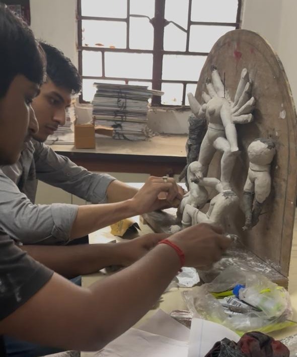 পড়ুয়াদের হাতে দেবী প্রতিমা