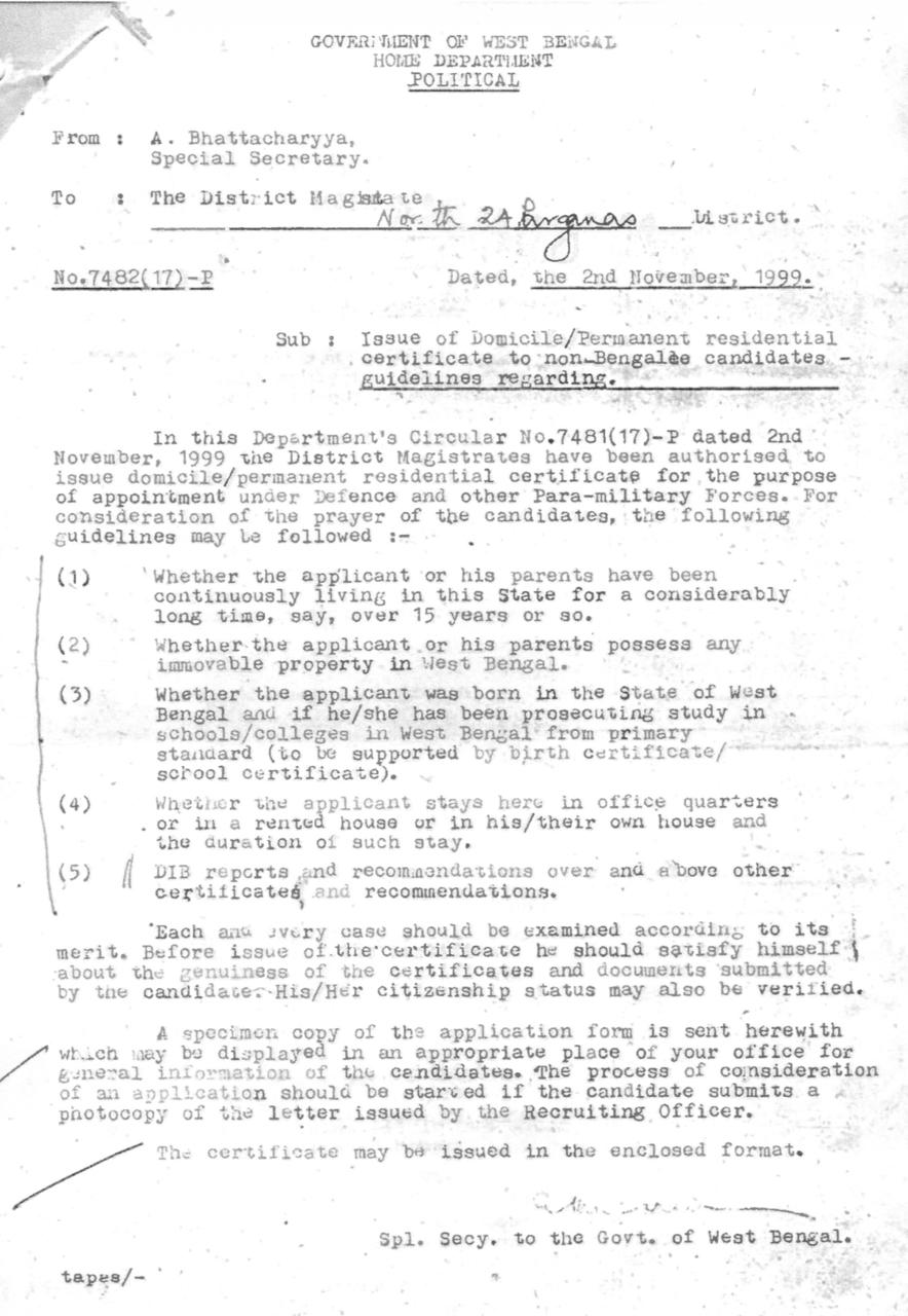 রাজ্য সরকারের ১৯৯৯ সালের ২ নভেম্বরের নির্দেশিকা