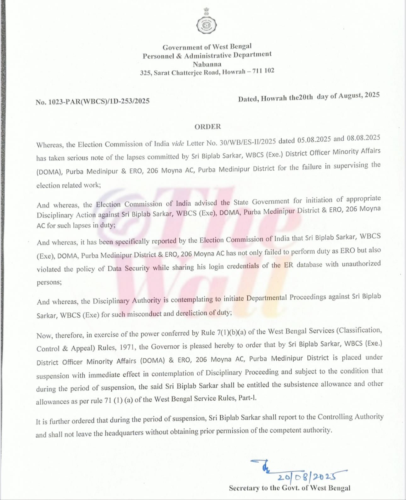 কমিশনের নির্দেশে চার আধিকারিককে সাসপেন্ড করল নবান্ন