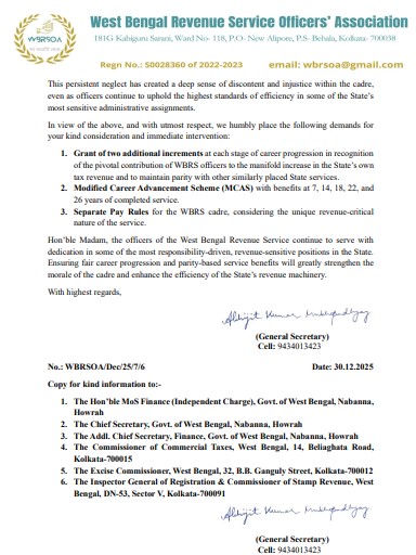 সংগঠনের বক্তব্য, ন্যায্য পদোন্নতি ও সমতা ভিত্তিক সুবিধা নিশ্চিত হলে শুধু অফিসারদের মনোবলই নয়, রাজ্যের রাজস্ব প্রশাসনের দক্ষতাও আরও মজবুত হবে।